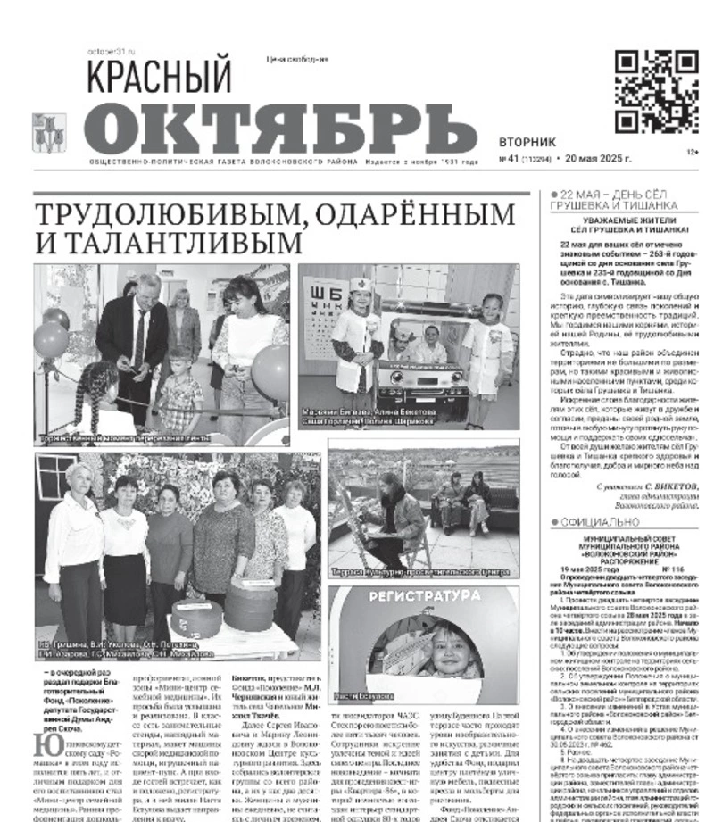 Газета Красный Октябрь №41 от 20 мая 2025 года