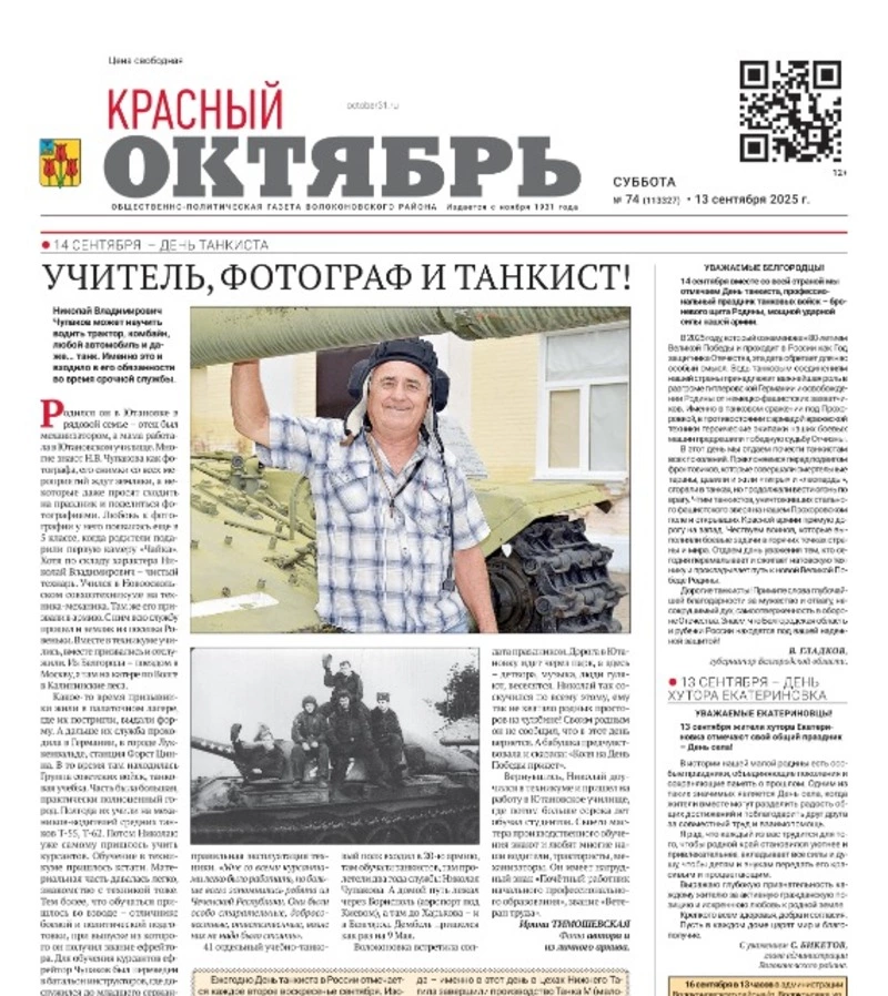 Газета Красный Октябрь № 74 от 13 сентября 2025 года