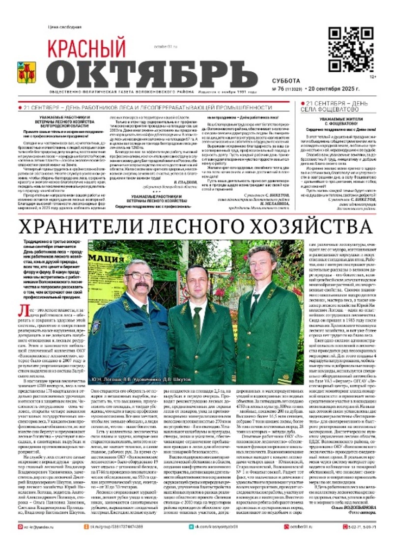 Газета Красный Октябрь №76 от 20 сентября 2025 года