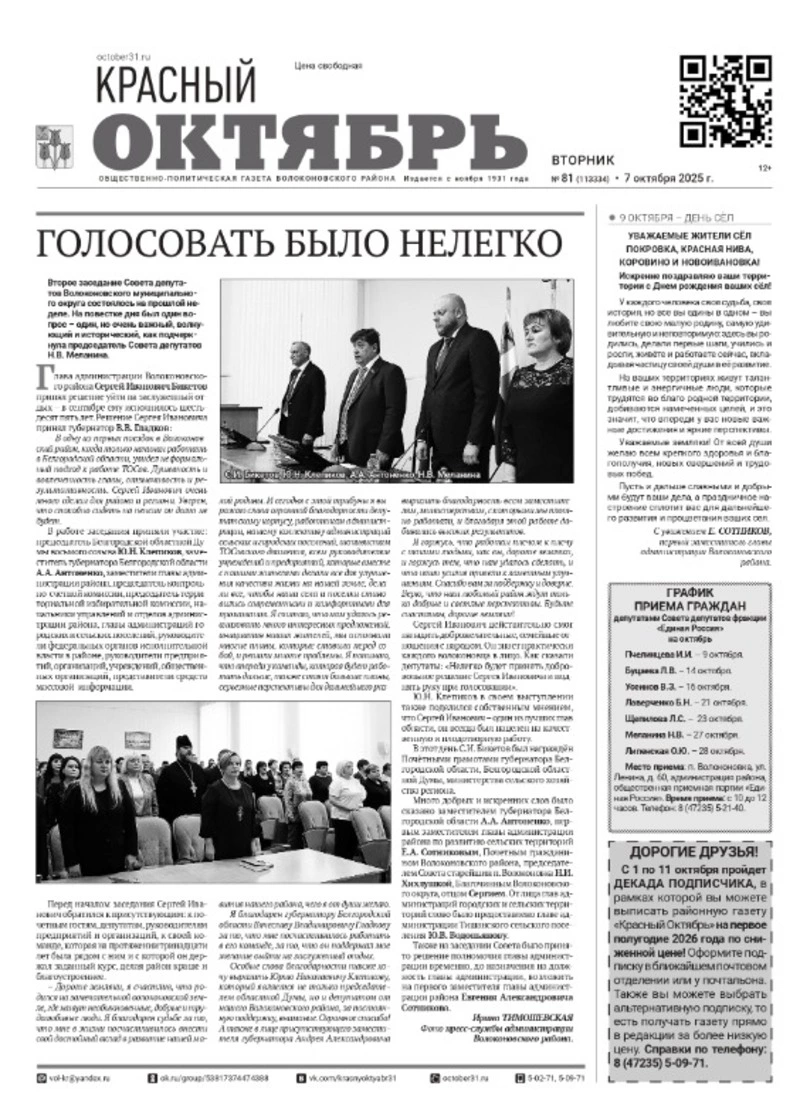 Газета Красный Октябрь № 81 от 7 октября 2025 года