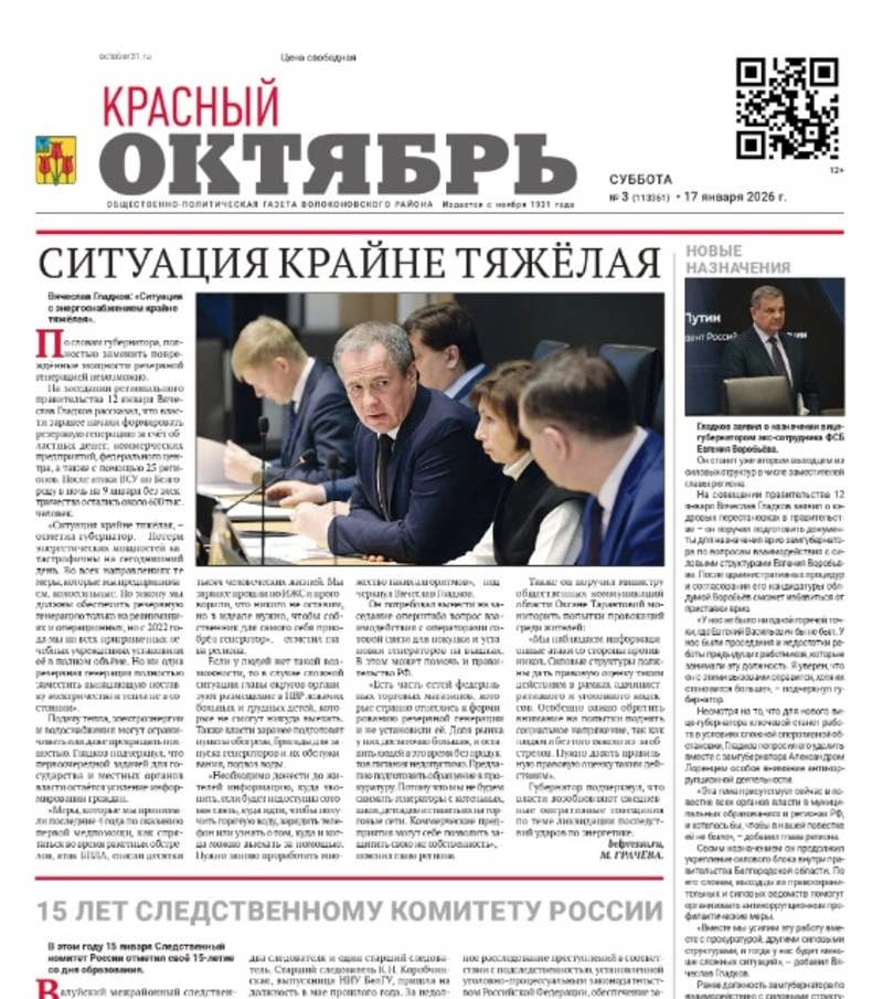 Газета Красный Октябрь №3 от 17 января 2026 года