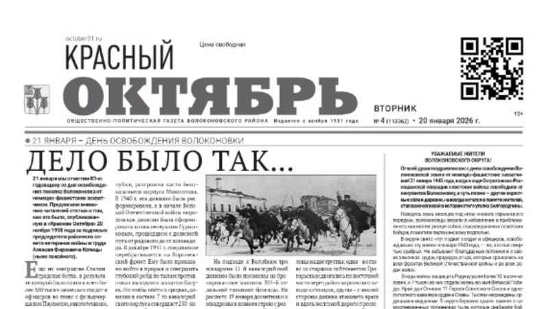 Газета Красный Октябрь №4 от 20 января 2026 года