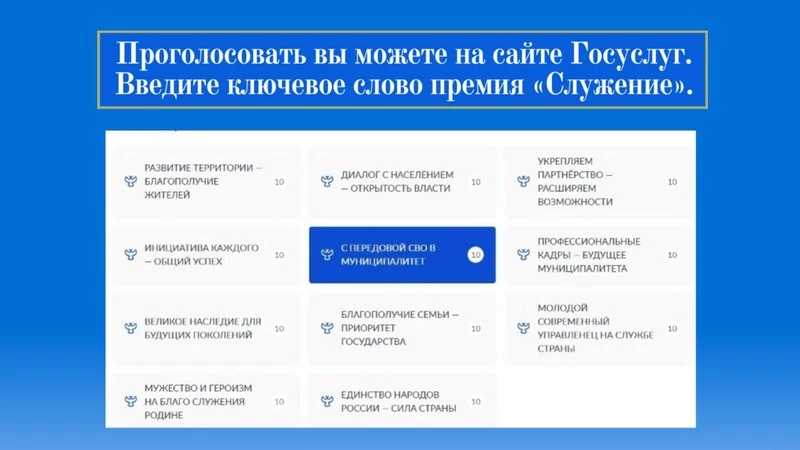 Белгородская область продолжает участвовать в народном голосовании III Всероссийской муниципальной премии «Служение». Конкурс проводится Всероссийской ассоциацией развития местного самоуправления при поддержке Администрации Президента Российской Федерации.