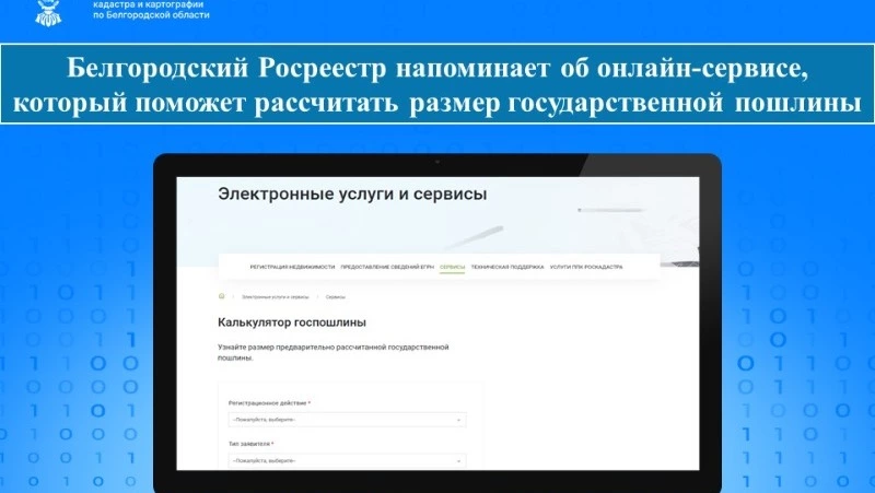 Белгородский Росреестр напоминает, что на официальном сайте Росреестра реализован бесплатный онлайн-сервис «Калькулятор госпошлины». Благодаря которому заинтересованные лица могут предварительно рассчитать размер государственной пошлины за проведение учетно-регистрационных действий.